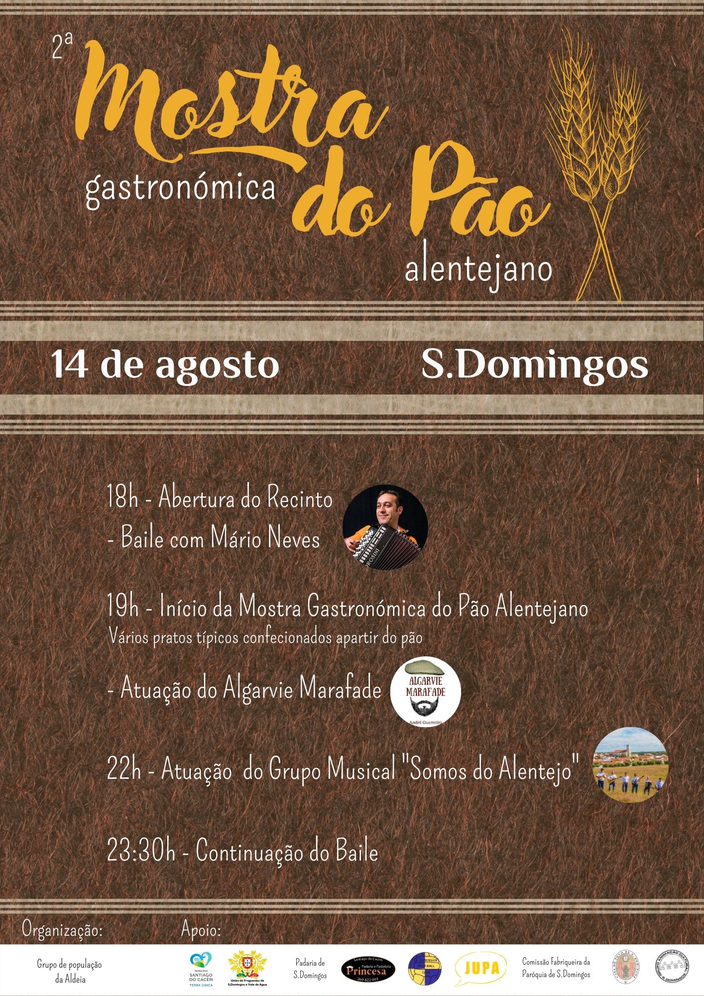 2ª Mostra Gastronómica do Pão Alentejano em S.Domingos ? Com um grande cartaz preprado em especial para si! Visite-nos no dia 14 de agosto, prove as iguarias confecionadas apartir do pão e divirta-se! ??