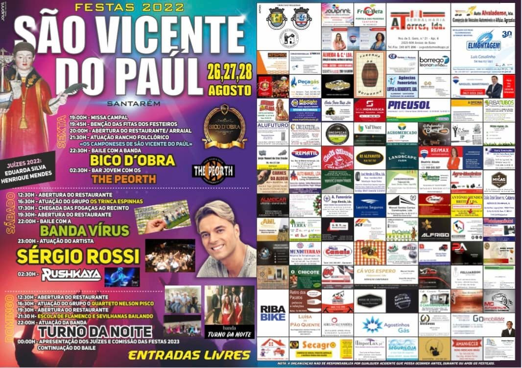 O nosso cartaz completo!! Estamos à tua espera! De 26 a 28 de agosto todos os caminhos vão dar a São Vicente do Paúl!?? Com tanta animação não há mesmo desculpas para faltar! Contamos contigo ?? Entradas livres