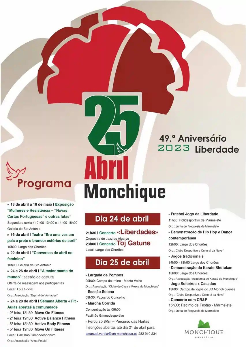 As Comemorações do 25 de Abril prosseguem e no dia 22 de abril terá lugar, na Galeria de Sto António, “Conversas de abril no feminino”, pelas 16h00. Aproveite para visitar a exposição patente “Mulheres e Resistência – “Novas Cartas Portuguesas” e outras lutas”. A Galeria de Sto António abre as portas neste sábado para estas duas iniciativas, a não perder! Dia 24 o Largo dos Chorões recebe às 21h30, o Concerto "Liberdades", pela Orquestra de Jazz do Algarve e às 23h00, o Concerto com Toj Gatune. Consulte o programa e participe nas restantes atividades.