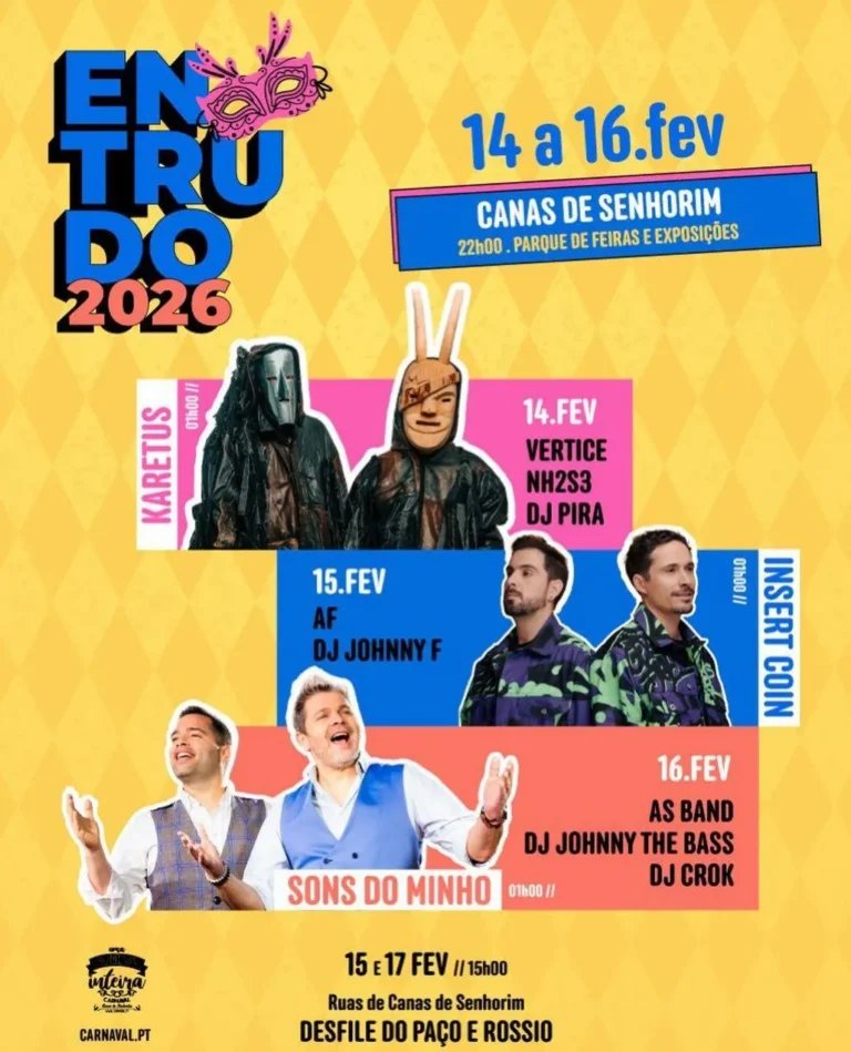 Evento de Carnaval com várias atuações musicais e desfiles.
