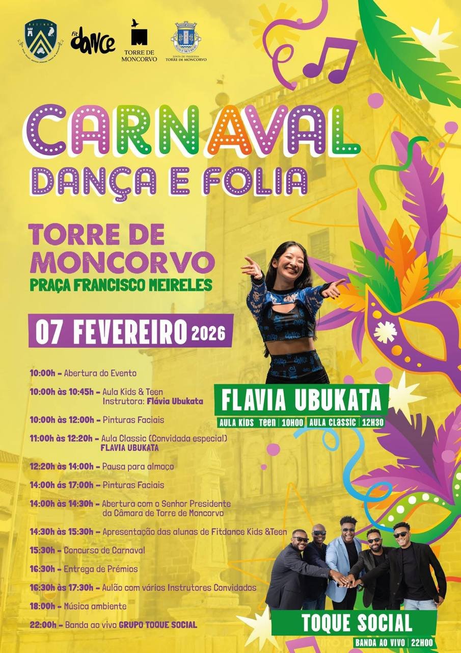 Evento com aulas de dança, pinturas faciais, concurso de carnaval e música ao vivo.