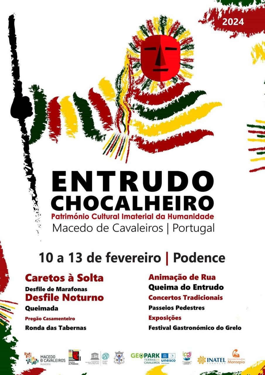 Entrudo Chocalheiro 2024 - Podence ENTRUDO CHOCALHEIRO o Carnaval mais Genuíno de Portugal está de volta à aldeia mais colorida de Portugal, Podence - Macedo de Cavaleiros. São 4 dias de muita folia e alegria na tradição cultural reconhecida como Património Cultural Imaterial da Humanidade. O programa do evento será divulgado brevemente.