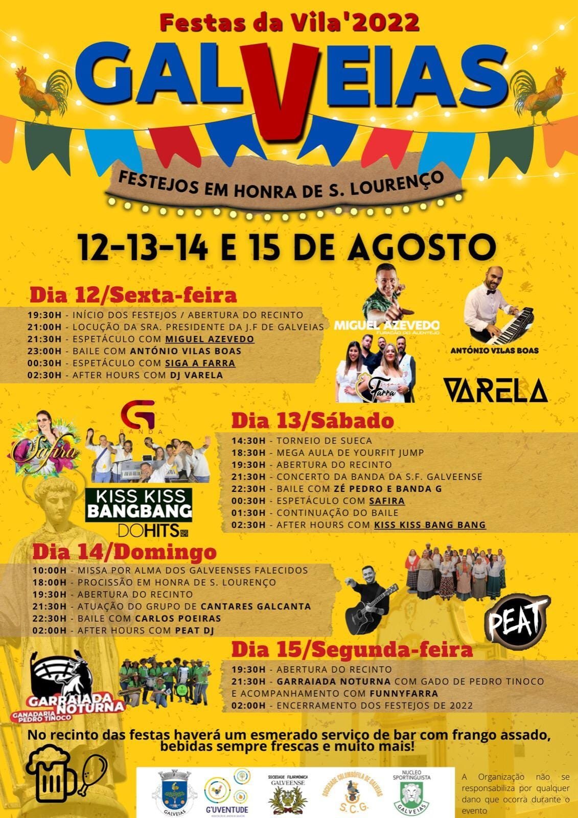 Ecrã completoEvento terminadoFestas da Vila 2022📅Datasexta-feira, 12 de agosto de 2022(4 dias)até segunda-feira, 15 de agosto de 2022📍LocalGalveias, Galveias, Ponte de Sor (Portalegre)🗺️DireçõesWaze|Google MapsSobre este eventoFestas da Vila 2022Localização