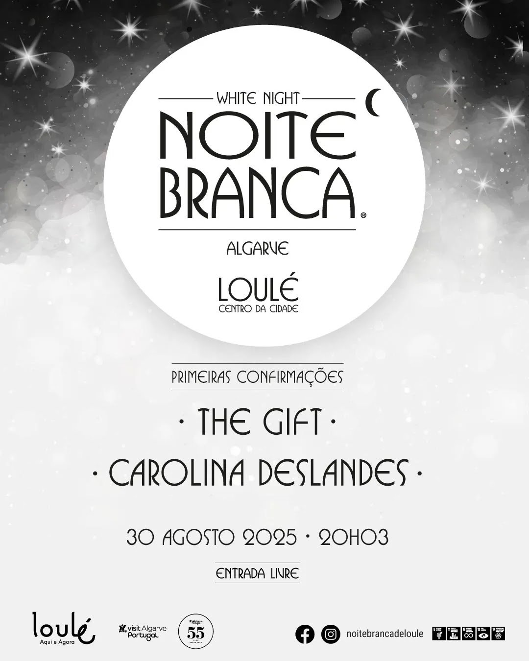 Ecrã completoEvento terminadoNoite Branca 2025 - Loulé📅Datasábado, 30 de agosto de 2025📍LocalLoulé, Loulé (São Clemente), Loulé (Faro)🌐Websitehttps://www.facebook.com/noitebrancadeloule/?locale=pt_PT🗺️DireçõesWaze|Google MapsSobre este eventoNoite Branca 2025 - LouléLocalização