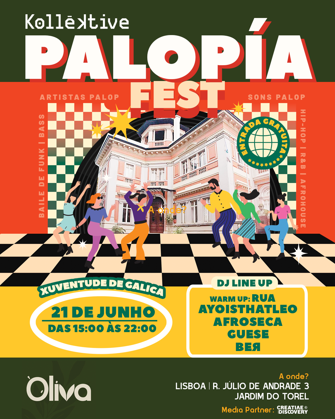 A cidade de Lisboa ganha um novo palco cultural e tu és o convidado de honra. No coração de Lisboa, com uma das vistas mais bonitas sobre a cidade, nasce um novo ponto de encontro para a cultura, a música e a gastronomia: o Palopía Fest celebra não só a diversidade sonora e artística, mas também a inauguração oficial do espaço OLIVA e o lançamento da Kollēktive uma nova agência de artistas e eventos culturais únicos, pensados para criar memórias. E onde é que tudo isto acontece? No Palácio da Xuventude da Galiza, um local histórico e multicultural, situado em Lisboa, e dono de um secreto miradouro, sob a cidade de Lisboa. Line-up de Djs de luxo com talentos emergentes e convidados especiais: Rua BeЯ Guese Afroseca Ayoitsthatleo Sons do mundo e PALOP: Afrohouse | Hip Hop | Miami Bass | Jersey Club | House | Baile de Funk Vai ser uma fusão especial com música portuguesa, espanhola e ritmos PALOP. Gastronomia com sotaque luso-galego: O restaurante OLIVA estará de portas abertas com o melhor da cozinha portuguesa e galega, tapas, petiscos e bebidas para saborear. Porquê ir? Se gosta de boa música, comida e bebida, é o evento perfeito para estar com amigos e criar boas memórias. Cultura, música, sol, partilha e comunidade. ENTRADA GRATUITA Esplanada, boa comida, bons sons e uma vista de luxo.