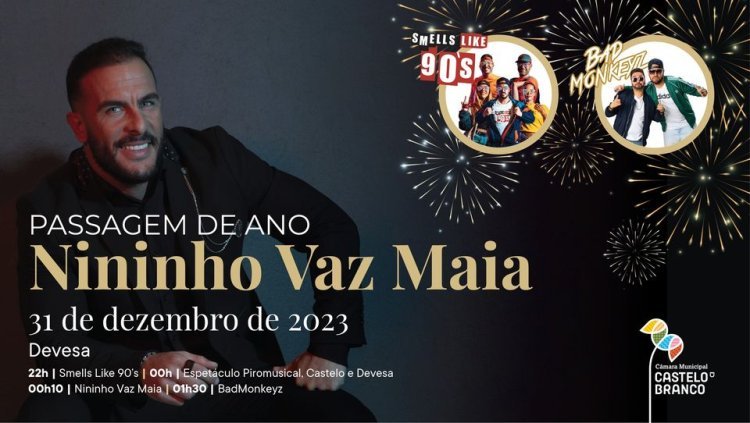 Passagem de Ano 2023 - Castelo Branco Programa da Passagem de Ano em Castelo Branco 2023. 31 de Dezembro 22:00 - Smells like 90's 00:15 . Nininho Vaz Maia 01:30 - Bad Monkeys